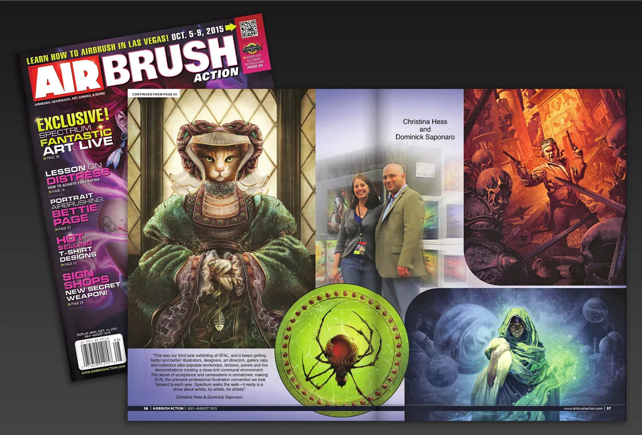 Back in May we met illustrator and all around awesome guy Jerry LoFaro (Of Celestial Seasonings fame!) while exhibiting at Spectrum Live. He asked Christina and I if we'd like to be featured in an upcoming issue of Airbrush Action for an article he was putting together on the event. Our response... Of course we did!